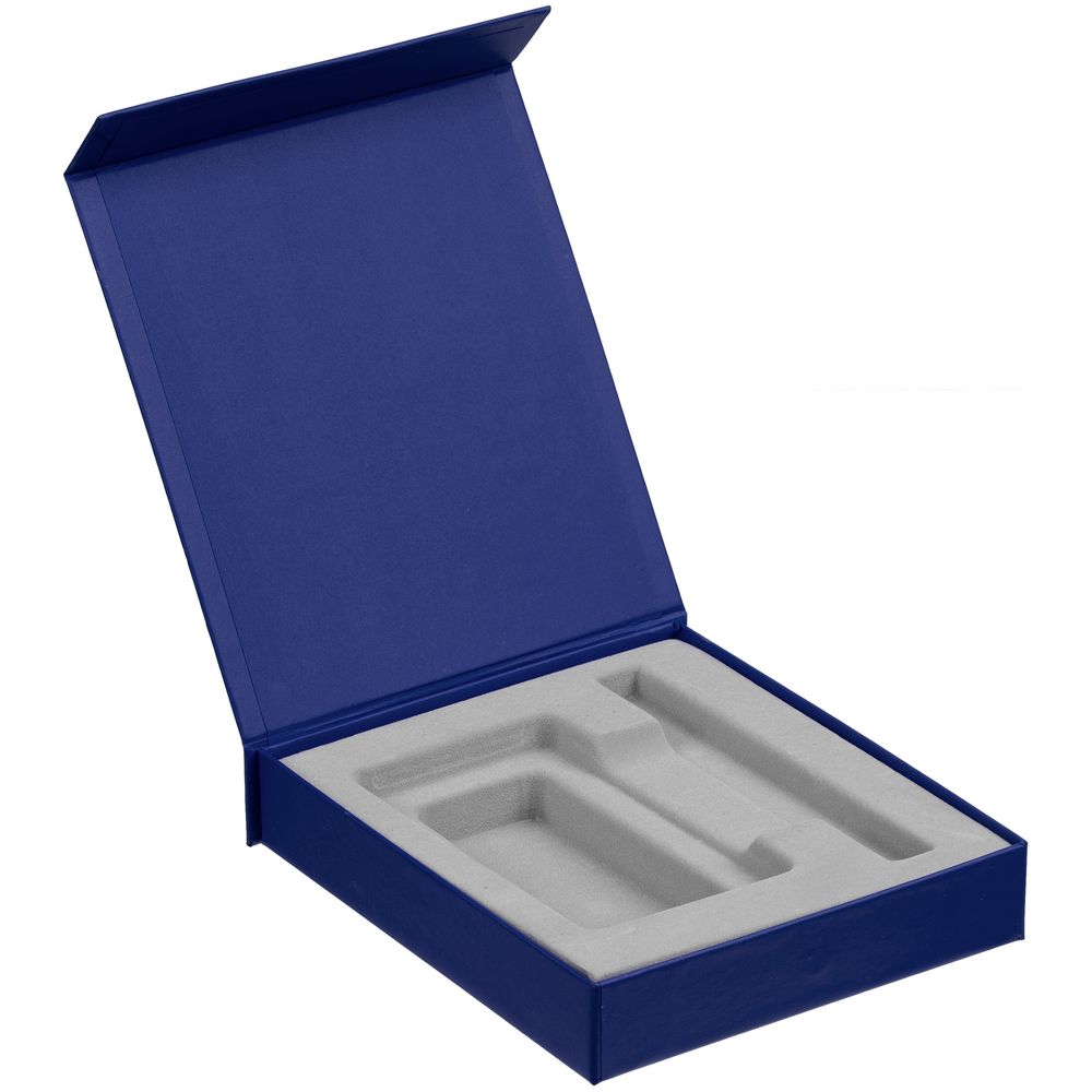 Подарочная коробка для аккумулятора 12,3х7,1х1 см и ручки 14,5х1,5х0,8 см с крышкой на магните и флокированным ложементом.