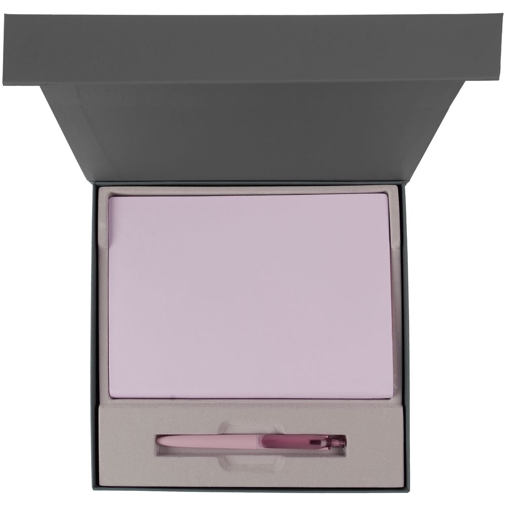 Коробка из переплетного картона, кашированного дизайнерской софт-тач бумагой Senzo, с одной створкой на магните и флокированным ложементом.
