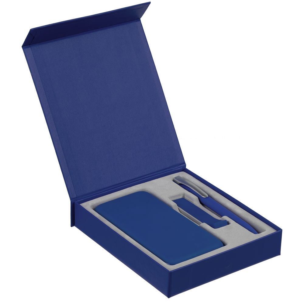 Подарочная коробка для аккумулятора 14,5х7,5х1,3 см, флешки 8,2х2,2х1,2 см и ручки 14,5х1,5х0,8 см с крышкой на магните и флокированным ложементом.