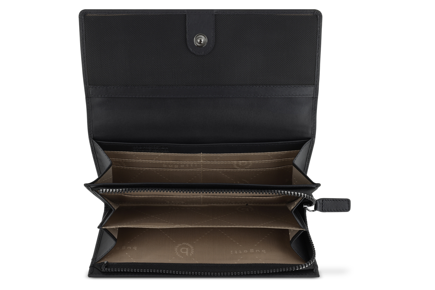 Кошелек женский BUGATTI Elea, бежево-черный цвет, жаккард/воловья кожа/полиэстер, 19х3х10 см