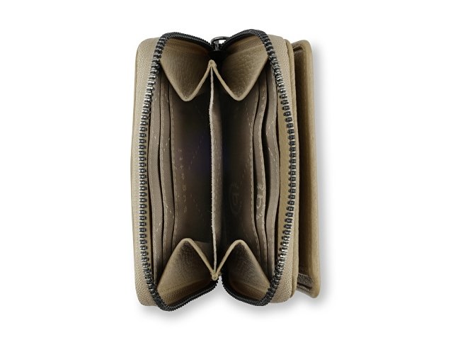 Функциональная организация: основное отделение на молнии, 6 слотов для карт, 8 карманов, отделение для купюр, 2 отделения для монет, ремешок на запястье, защита данных RFID.