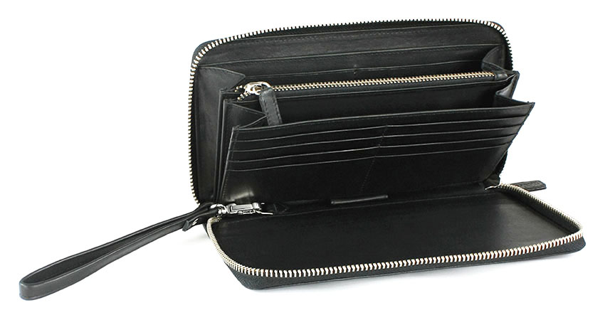 Функциональная организация: 2 отделения для банкнот, отделение для монет на молнии, 16 слотов для карт, 4 кармана, держатель для ручки
