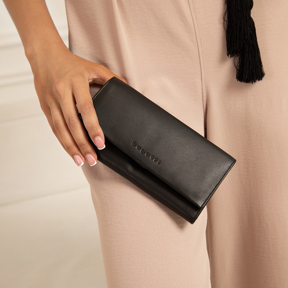 Кошелёк BUGATTI Vertice, чёрный, натуральная воловья кожа, 19,2х3х9,3 см