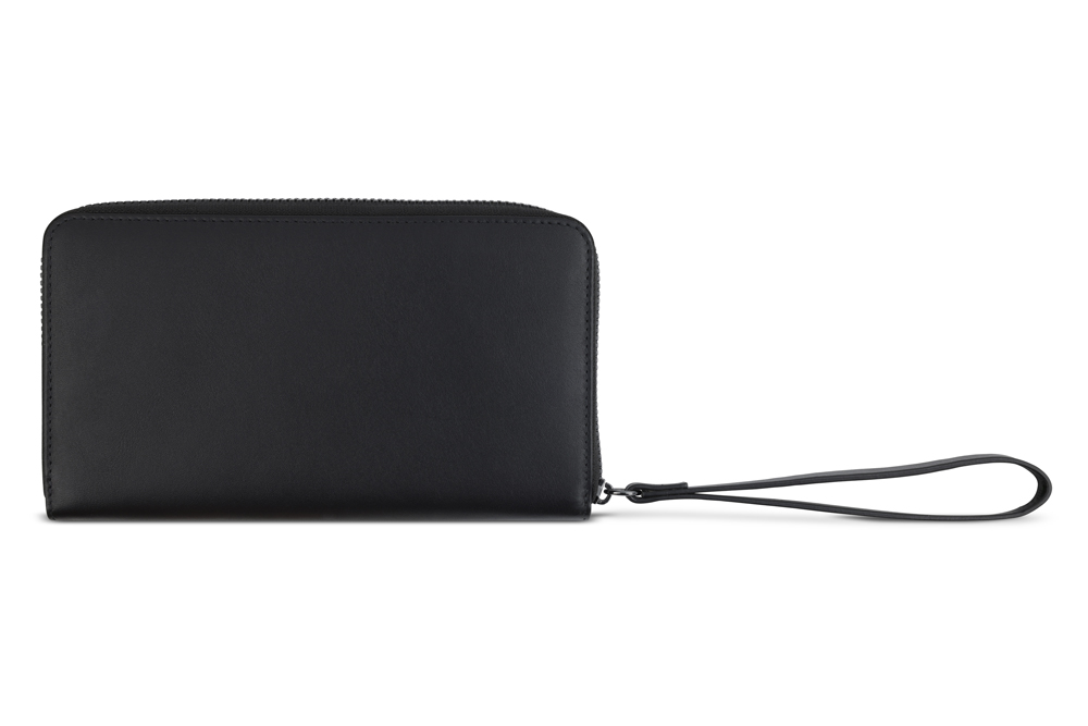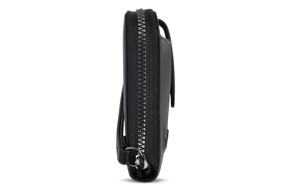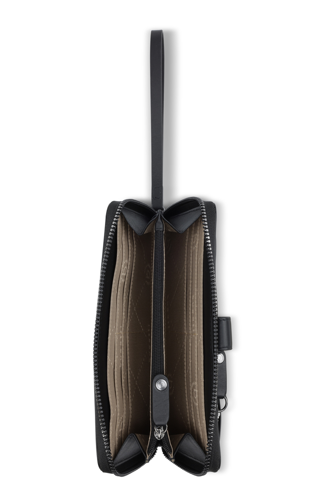 Функциональная организация: основное отделение на молнии, 12 слотов для карт, 2 отделения для купюр, 2 кармана, отделение для монет на молнии, съемная ключница, ремешок на запястье, защита данных RFID.