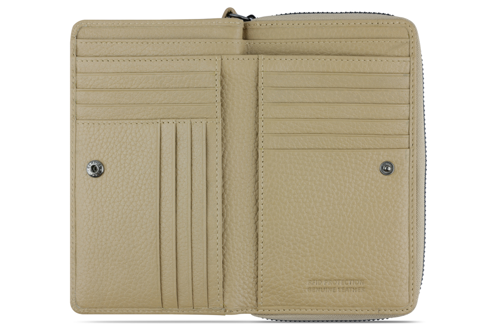 Кошелёк женский BUGATTI Elsa, с защитой RFID, песочного цвета, воловья кожа/полиэстер, 15,5х3х9,5 см