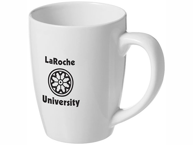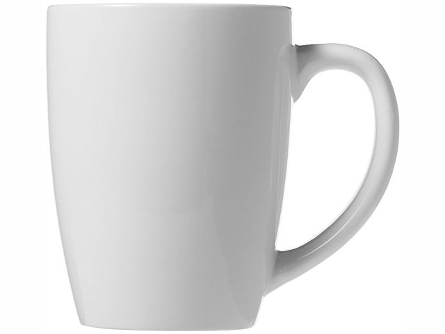 Стильная керамическая кружка емкостью 350 мл. Тампопечать (1 цвет (белые изделия)) на данный товар осуществляется бесплатно. Оплачивается только настройка оборудования в размере 4500 рублей на весь тираж.