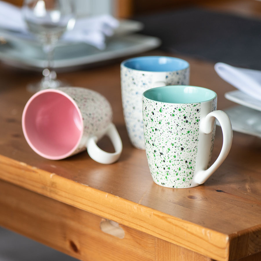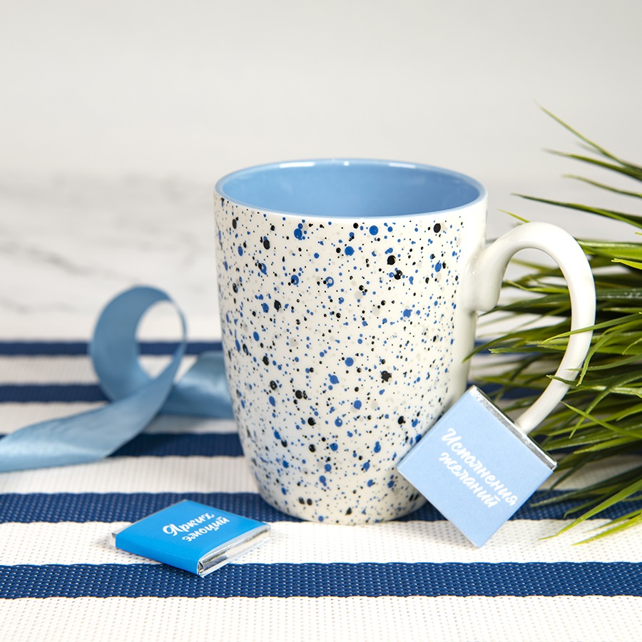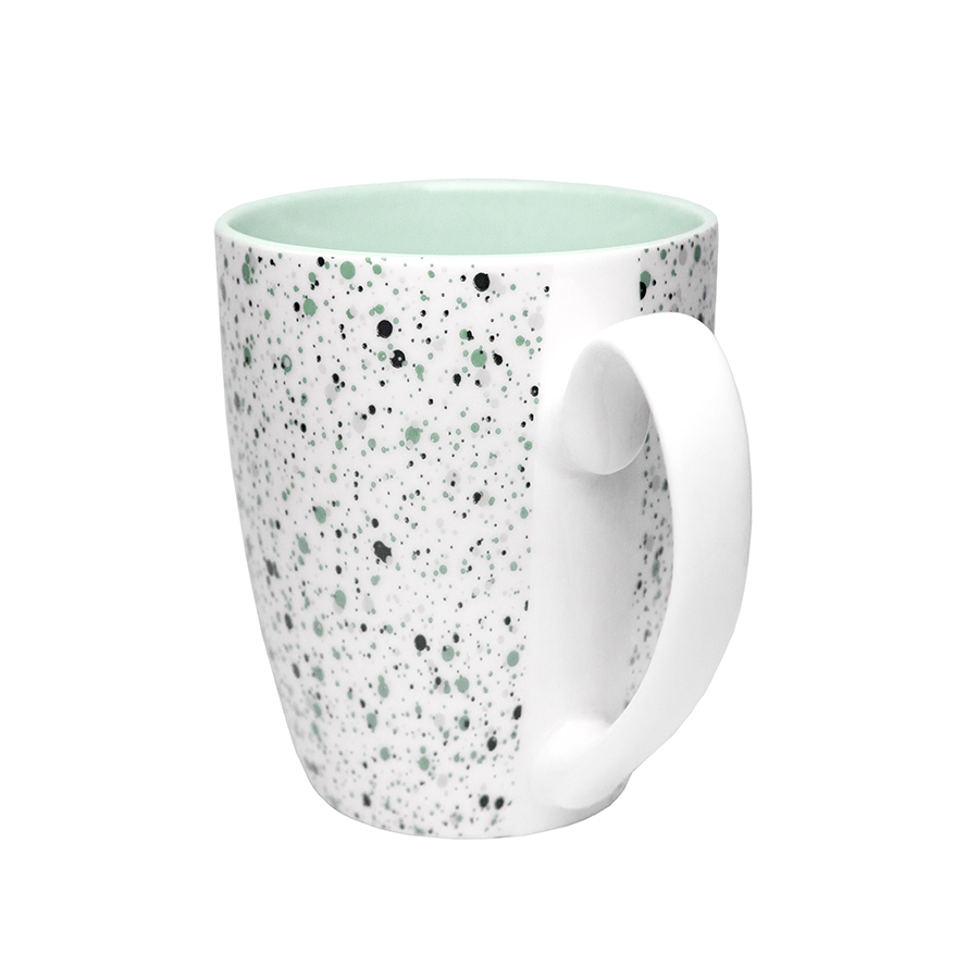Кружка наиболее популярной формы с нежным цветом внутри и новым необычным покрытием снаружи. TERRAZZO - старинный венецианский узор с мелкими цветными вкраплениями. Изначально использовался для декорирования пола и изделий из камня. В современном интерьере этот материал стали использовать в самых неожиданных вариациях, при изготовлении посуды, мебели, кухонных фасадов, для оформления интерьера ванных комнат, в качестве светильников и других аксессуаров для дома. А проекты с использованием терраццо в интерьере заполонили Instagram и Pinterest дизайнеров и поклонников дизайна по всему миру. Цвет внутренней части близкий к Pantone 566C Внимание! Рисунок (цветные вкрапления) может просматриваться через нанесенное изображение