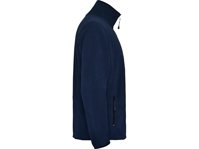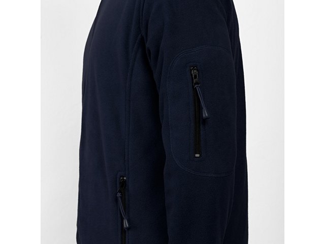 Куртка из микрофлиса с высоким воротом. Контрастная центральная молния, боковые карманы на молнии, декоративная молния на левом рукаве, отделка резинкой по краю рукавов. Налокотники из основного материала.