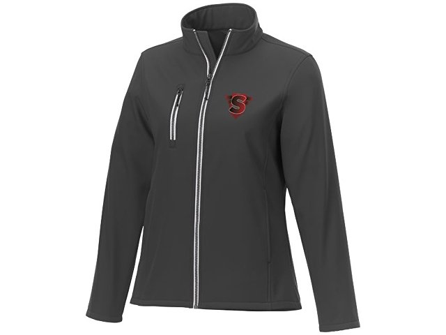 Женская куртка софтшелл Orion. Женская модель с разрезами по бокам. Отрезной-отрывной ярлык для комфорта. Нагрудный карман на молнии. Карманы. Швы моделирующие фигуру и приталенный крой. Внутренняя планка. Петелька-вешалка. Механическая стрейч-ткань из 100 % полиэстера с переплетением микрофлиса со 100 % полиэстером. 250 г/м². Термотрансфер (1 цвет (цветные изделия)) на данный товар осуществляется бесплатно. Оплачивается только настройка оборудования в размере 10000 рублей на весь тираж.