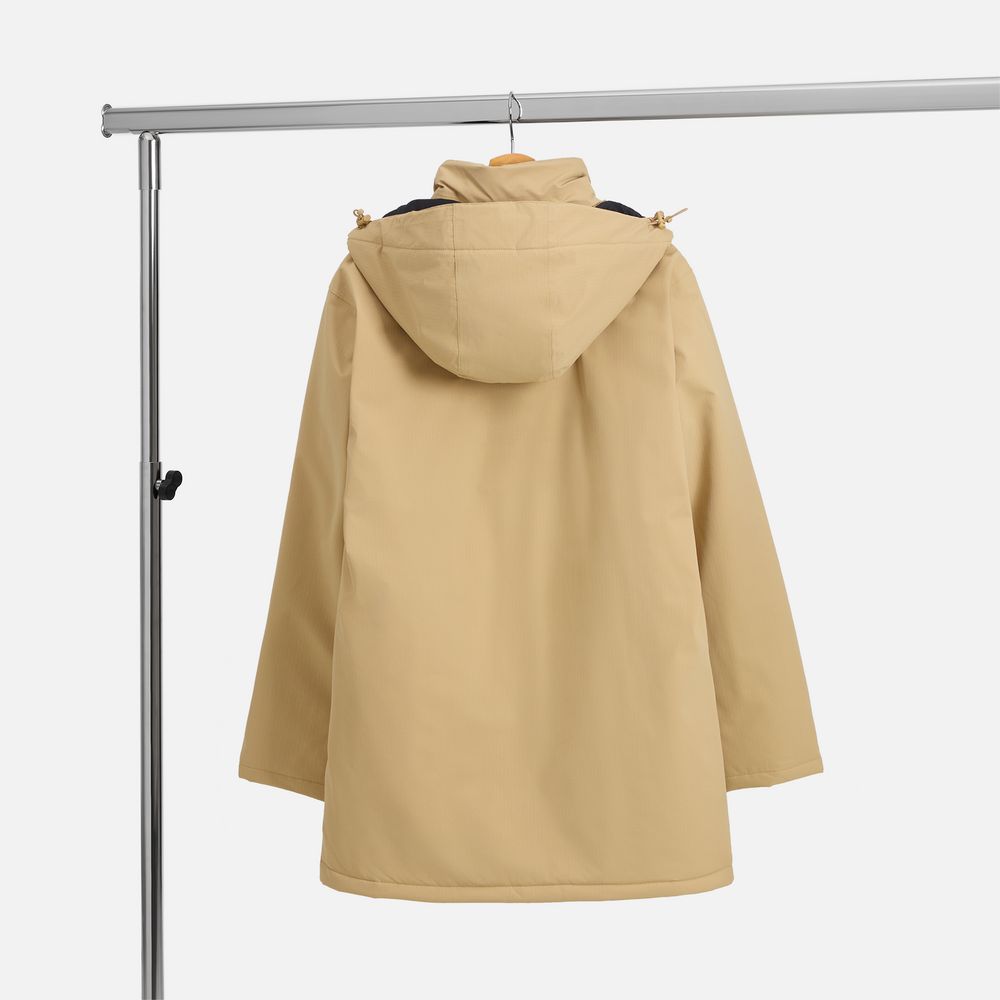 - Отстегивающийся капюшон с утяжкой и кнопками для плотного прилегания и защиты горла