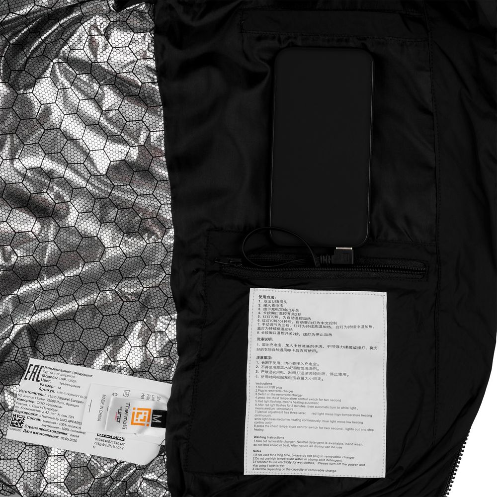 | Материал: | верх - полиэстер 100%, плотность 290-300 г/м²; подкладка - полиэстер 100%, электрогрелка - углеродное волокно (графен) |