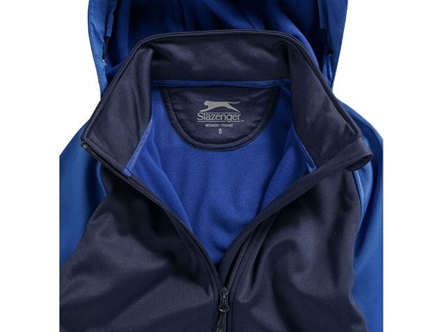 Женская куртка софтшел Challenger. Стандартный покрой. Водонепроницаемая куртка Софт Шел. Дышащий. Отстегивающийся капюшон. Регулируемые манжеты на липучках. Завязки со стопперами внизу. Передний карман и карман на рукаве на обратных молниях. Сзади длиннее чем спереди. Принт Slazenger на шве слева. Однослойная джерси гладкого переплетения из 100% полиэстера, склеенного со 100% микрофлисом. 360 г/м². Термотрансфер (1 цвет (цветные изделия)) на данный товар осуществляется бесплатно. Оплачивается только настройка оборудования в размере 10000 рублей на весь тираж.