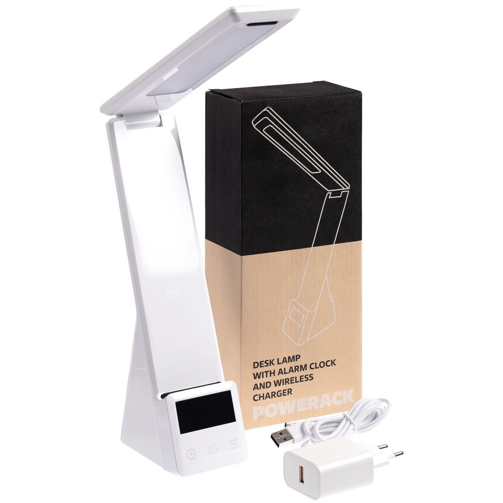 Powerack — многофункциональное устройство, которое сочетает в себе функции настольной лампы, электронных часов с будильником, станции беспроводной и проводной зарядки устройств.