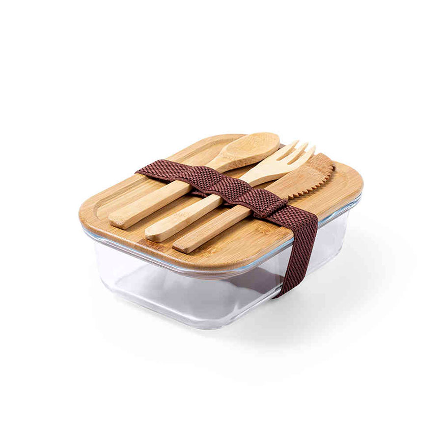 Ланч-бокс BEJAR, ложка, вилка нож в комплекте, стекло/бамбук