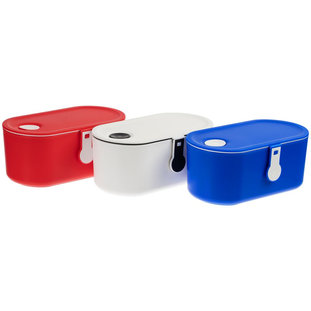 Вместительный ланчбокс со съемным разделителем. Дизайн с контрастными деталями поможет быстрой найти свой обед на полке рабочего холодильника.
