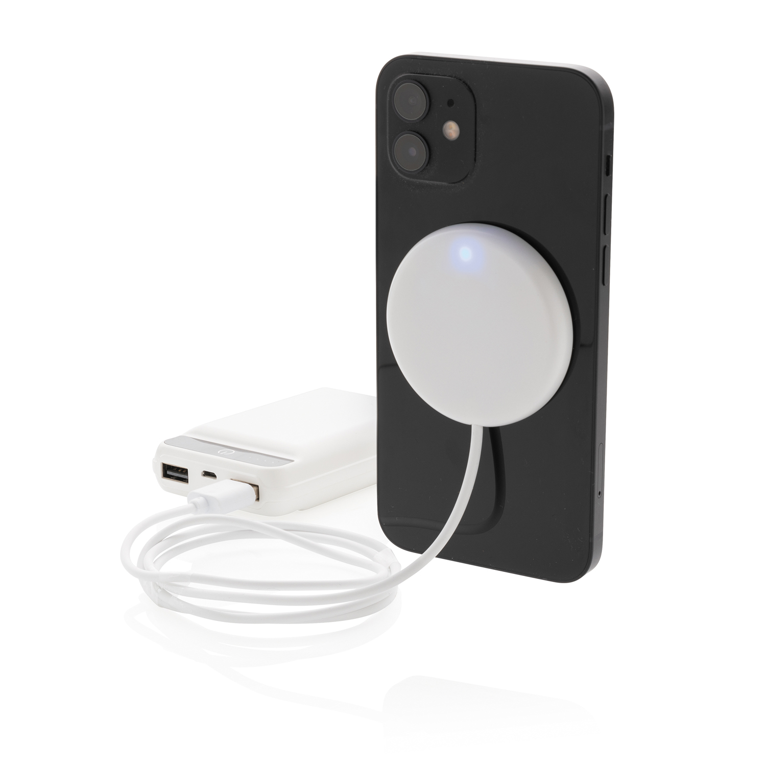 Разместите магнитное устройство из материала ABS на задней части вашего iPhone 12, чтобы зарядить телефон. Магниты обеспечат надежное сцепление с панелью смартфона. Функция беспроводной зарядки 5 Вт совместима со всеми устройствами с поддержкой QI (iPhone 8 и выше, а также телефонами на Android), поэтому вы можете использовать эту модель как обычный девайс для зарядки без проводов. В комплект входит 100-сантиметровый кабель micro USB из материала TPE (без ПВХ). Вход постоянного тока: 5 В / 1,5 А; Выход 5 В / 1 А (5 Вт). Внутри — 11 термостойких магнитов N52H для надежного крепления к смартфону.