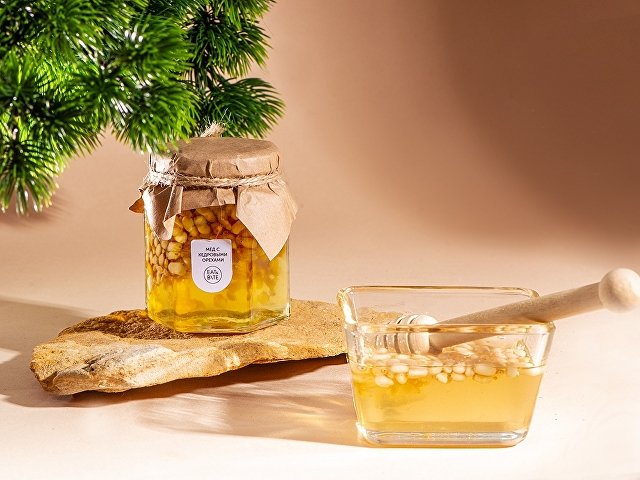 Мед и орехи прекрасно сочетаются друг с другом, образуя оригинальный и запоминающийся вкус. Медовый десерт с кедровыми орешками, не только вкусный, но и полезный, идеально подойдет для чаепития, поэтому подобный подарок можно также дополнить чаем.