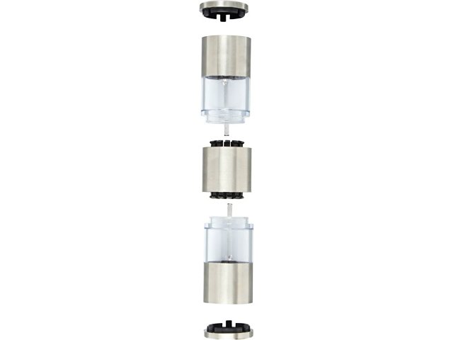 Двусторонняя мельница с одной стороной для соли, а второй для перца. Перец и соль в комплект не входят. Нержавеющая сталь, пластик PS.