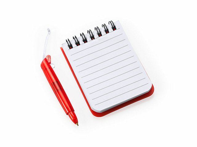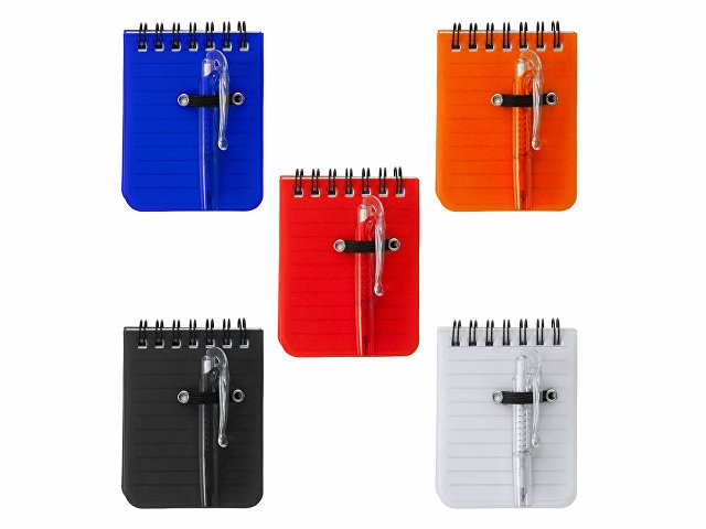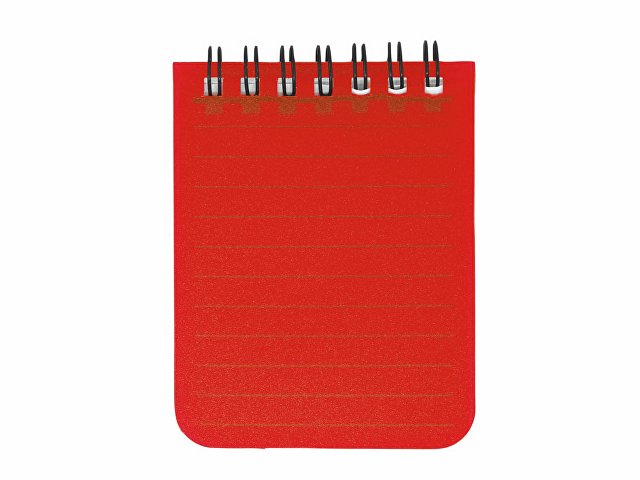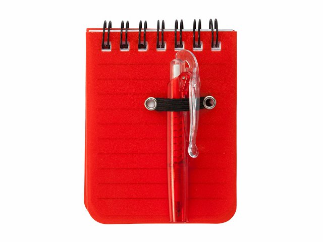 Мини-блокнот на спирали с жесткой полипропиленовой обложкой. 60 листов линованной бумаги. В комплект входит шариковая ручка с синими чернилами.