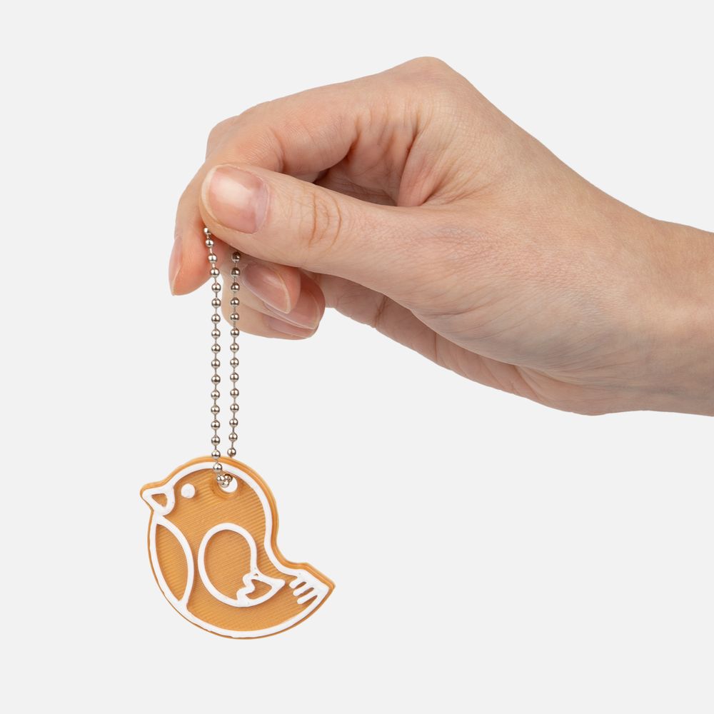 Мини-подвеска на фото изготовлена из PLA-пластика двух цветов: телесный 721С и белый.