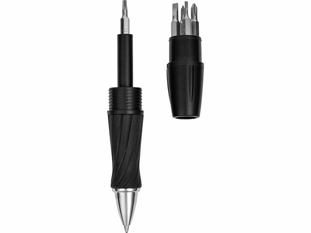 Инструмент Joker 7-в-1 с ручкой и фонариком. Шариковая ручка с поворотным механизмом, корпус- холдер для 5-ти насадок отверток. Светодиодный фонарик с поворотным включением. Батарейки в комплекте. АБС пластик. Тампопечать (1 цвет (цветные изделия)) на данный товар осуществляется бесплатно. Оплачивается только настройка оборудования в размере 4500 рублей на весь тираж.