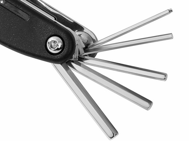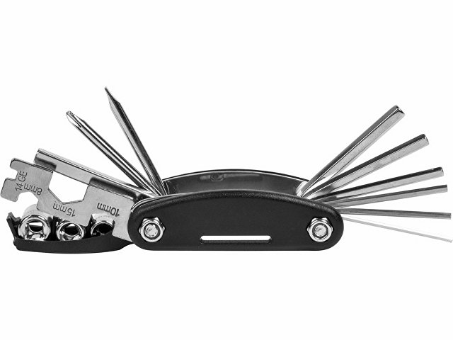 Многофункциональный инструмент от Roq сочетает в себе целых 16 функций: 6 шестигранных ключей (№ 2, № 2,5, № 3, № 4, № 5, № 6), 4 ключа (8 мм, 10 мм, 15 мм, 14GE), адаптер, крестообразную отвертку, шлицевую отвертку и 3 насадки (№ 8, № 9, № 10).