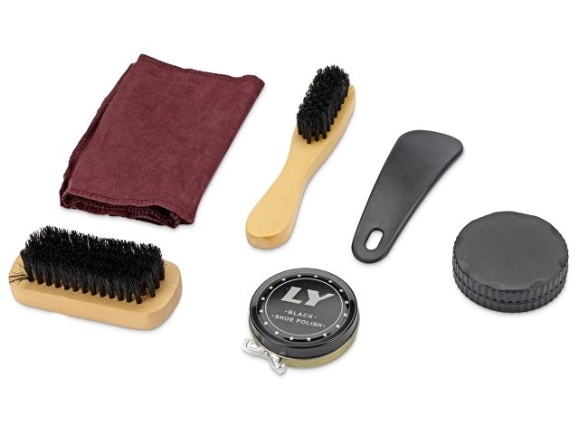 Набор для чистки обуви включает в себя 6 предметов, которые облегчат уход за туфлями, сапогами, ботинками. Набор компактно размещен в футляре из кожзама в виде портфеля, который очень удобно брать с собой в дорогу. Гравировка (оптоволоконный лазер) (Без чернения) на данный товар осуществляется бесплатно. Оплачивается только настройка оборудования в размере 1100 рублей на весь тираж.