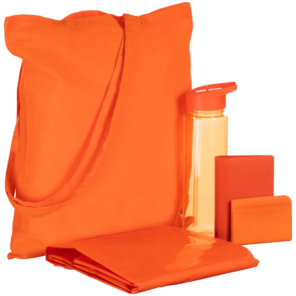 Материал: | обложка для паспорта, чехол для карточек - искусственная кожа; бутылка - пластик; сумка - хлопок 100%, плотность 105 г/м²; дождевик - полиэтилен |