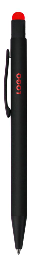 Металлическая шариковая ручка Raven черного цвета с поверхностью soft-touch. Особенностью этой ручки является зеркальная гравировка, которая вскрывается в цвет стилуса.