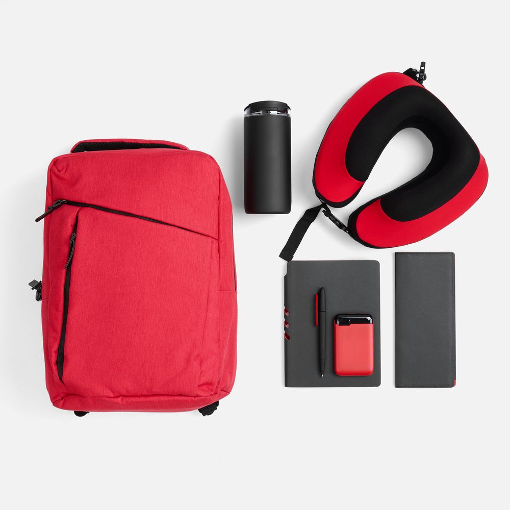Вместительный рюкзак позволяет с легкостью захватить с собой все необходимое в дорогу. Комфортная подушка гарантирует максимальный комфорт и поддержку шеи во время долгой поездки или перелета, а с дорожным органайзером все важные документы будут в исключительном порядке. Термостакан позволит утолить жажду или согреться, а аккумулятор обеспечит бесперебойную работу всех устройств. Войти в рабочее русло и спланировать все дела даже на ходу позволят ежедневник и ручка, которые всегда будут под рукой.
