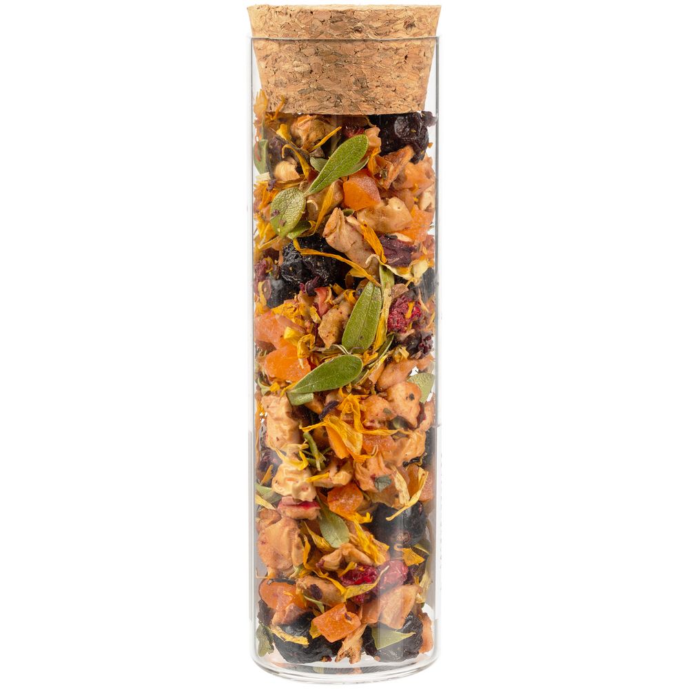 - чай зеленый «Восемь сокровищ Шаолиня» (состав: сенча, зеленый чай ганпаудер, папайя, лепестки сафлора, лепестки календулы, ароматизатор «клубника»), вес 25 г;