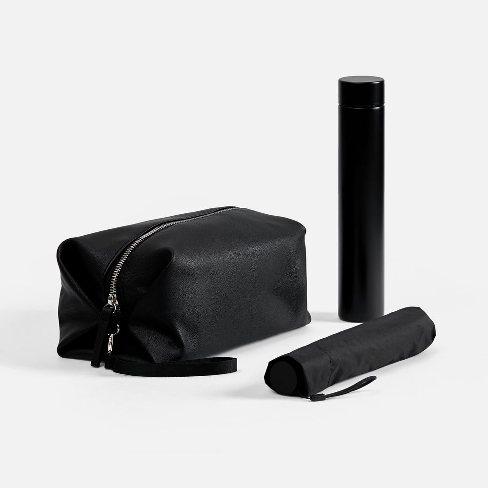 Размер ШВГ: | несессер: 22х12х12 см, в сложении 23х14х4 см; зонт: длина 49 см, диаметр купола 90 см, длина в сложении 22 см; термобутылка: диаметр 4,3 см, высота 23,5 см |