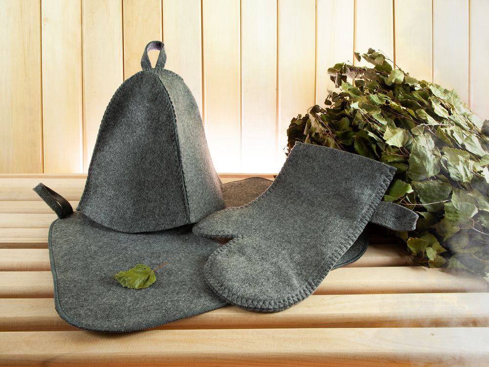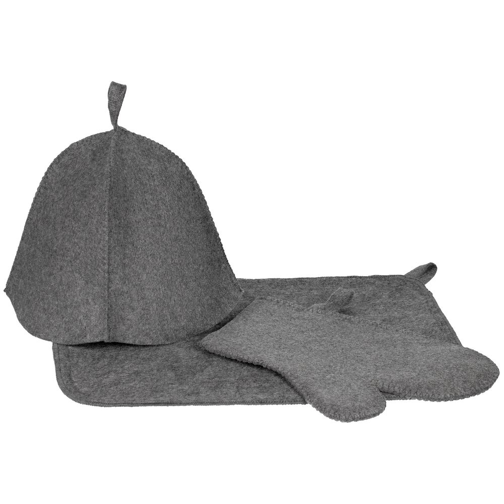 В набор входят: шапка для парилки;рукавица для парилки; многоразовый коврик для парилки.