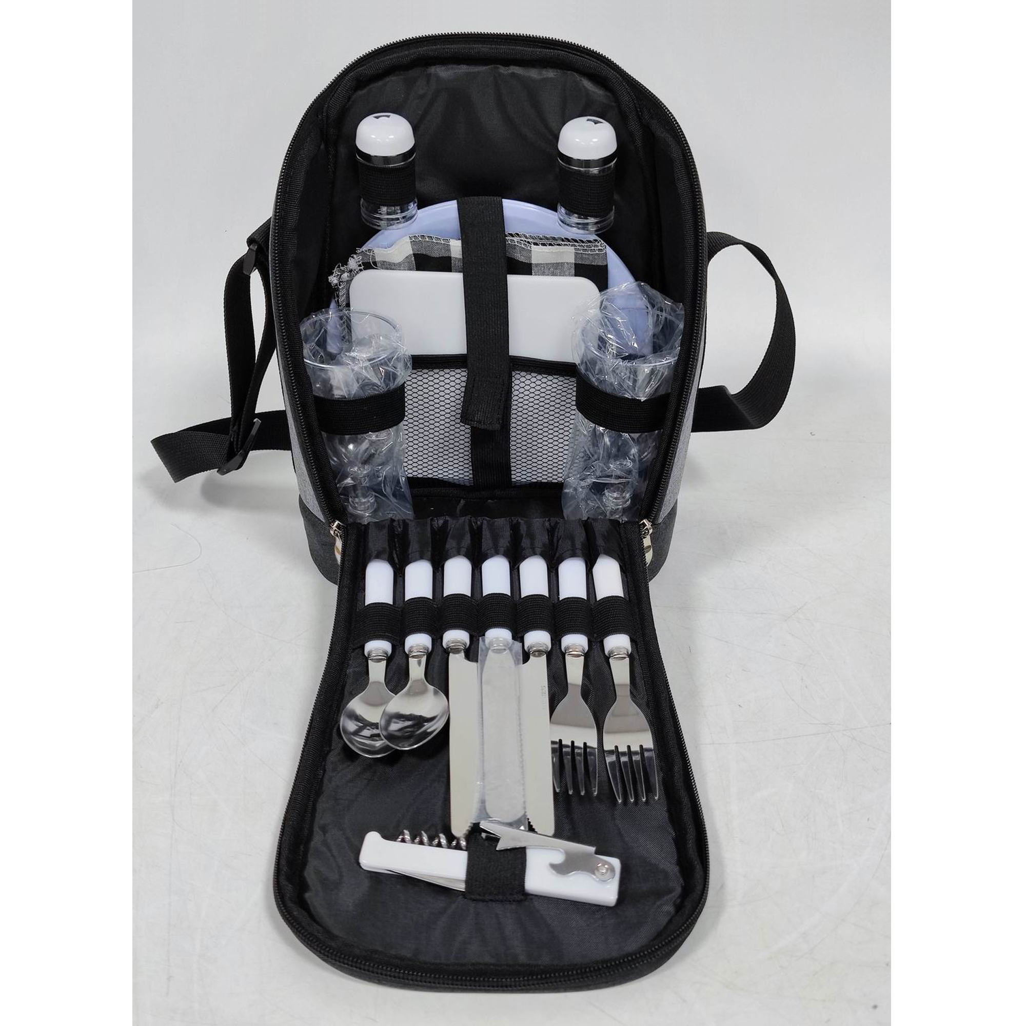 Набор для пикника "Австрия" рассчитан на 2 персоны. Все предметы в наборе фиксируются внутренними резинками.