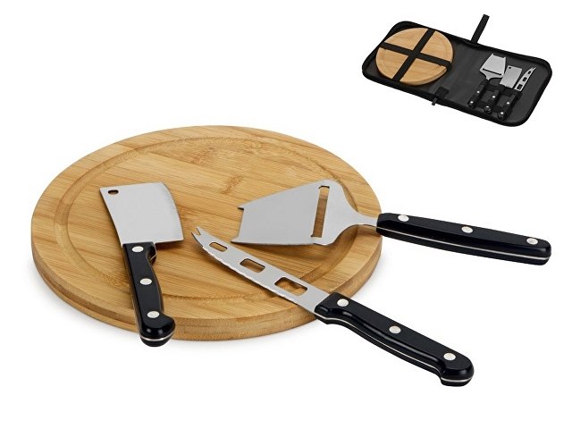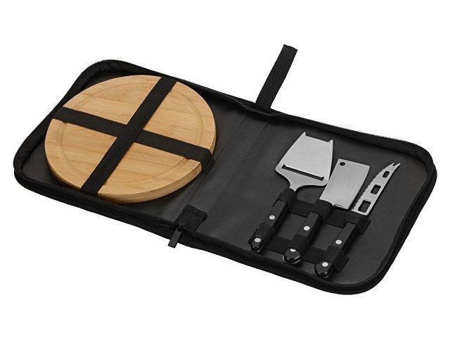 Набор для сыра не изменяет общему стилю Fabrizio: доска и три сырных ножа упакованы в чехол из искусственной кожи, который прекрасно сочетается по текстуре и цвету с другими изделиями серии. Чехол на молнии раскрывается как папка, надежно защищая принадлежности от механических повреждений и позволяя компактно и удобно хранить принадлежности. Для подвешивания и переноски предусмотрена текстильная петля на корешке. Внутри чехол имеет фиксирующие резинки для каждого ножа и доски.