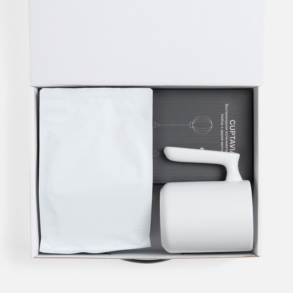 Размер ШВГ: | вспениватель: 11х4,7х23,3 см; кружка: диаметр 8 см, ширина с ручкой 11,2 см, высота 10,2 см; пачка кофе: 13х4,5х18,5 см; коробка: 26,3x36,6x10 см |