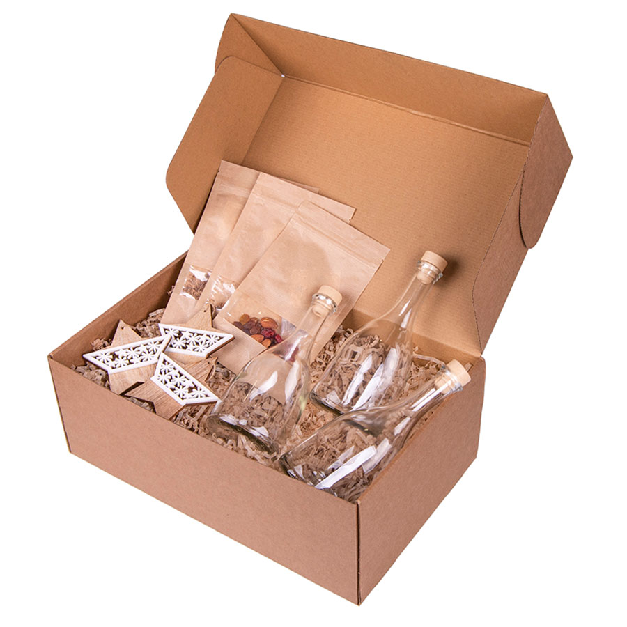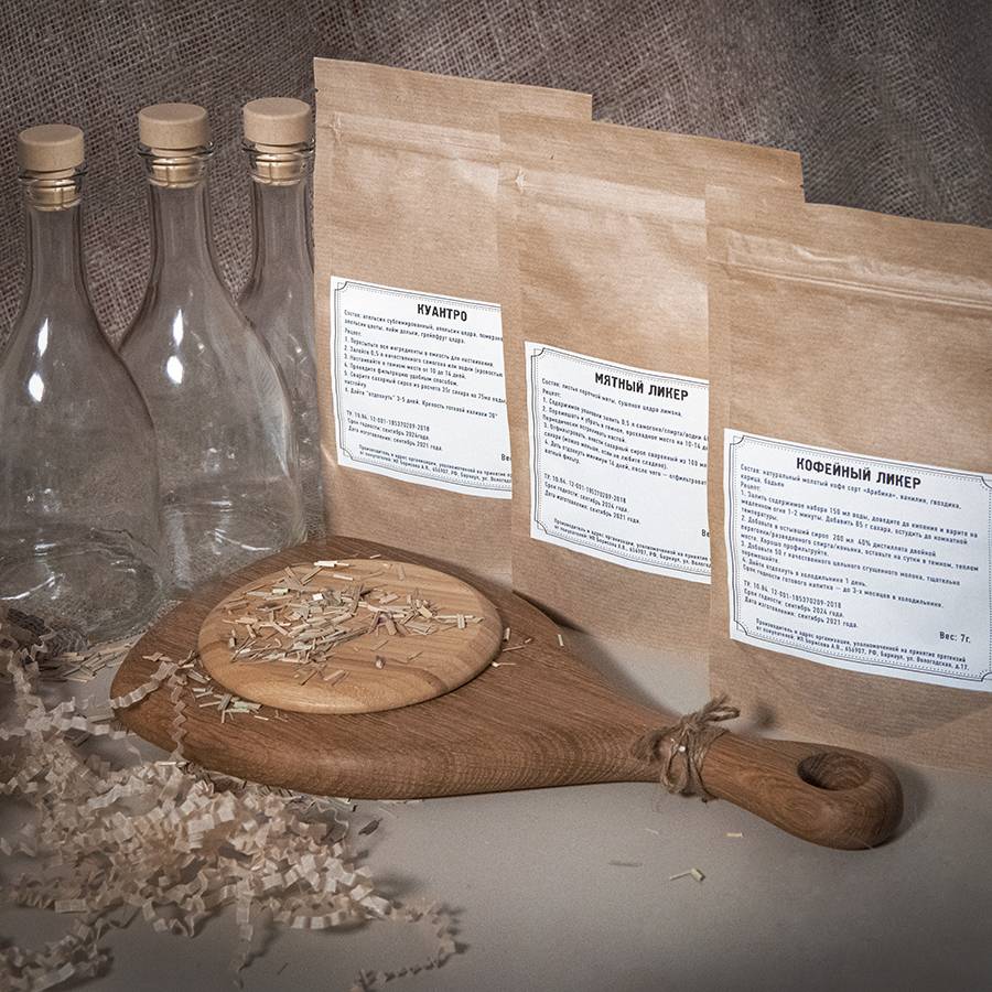 В состав набора арт. 39477 входят:- стружка- коробка подарочная арт. 34931, размер 40 х 25 х 15 см- три стеклянные бутылки объемом 0,5 литра- три полимерные пробки- три сбора для приготовления ликеров. Коньяк по- Латгальски напоминает вкус элитного, выдержанного годами коньяка. Особенное отличие напитка – это получение такого же вкуса за короткое время, как и у коньяка при длительном настаивании. Дорогие ёмкости заменяет дубовые кубики, а для придания вкусового сходства используют специи. Состав: Гвоздика, кора дуба, кардамон, дубовые кубики, мускатный орех молотый, ванилин, изюм. Вишня на коньяке - это домашняя настойка, которая имеет красивый рубиновый цвет и нежный вишнёвый вкус. Состав: Вишня вяленая, дубовые кубики средней обжарки (Кавказ), корица, миндаль, изюм, гвоздика, плоды шиповника. Миндальный коньяк обладает терпким вкусом с долгим послевкусием вишни. Дубовые кубики средней обжарки облагораживают настойку и придают нотки выдержанного элитного алкоголя.