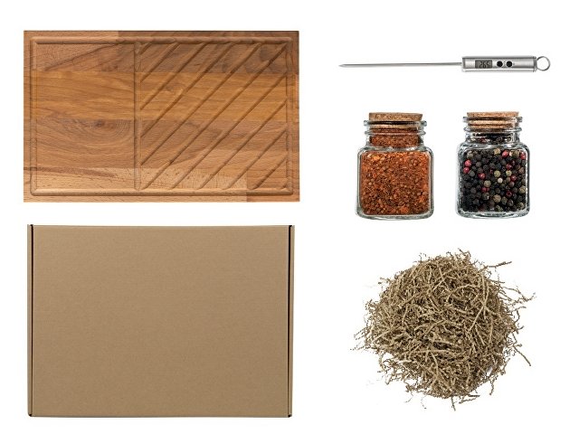 Материал: | коробка - картон, термометр - нержавеющая сталь, специи - стекло, пробковая крышка, доска - бук |