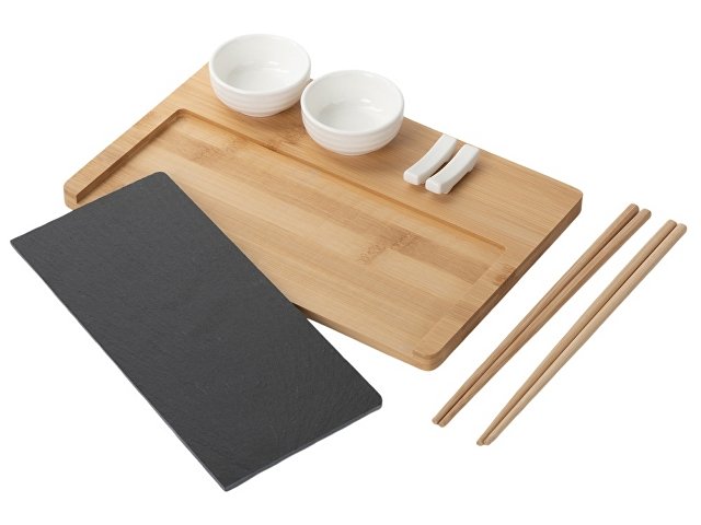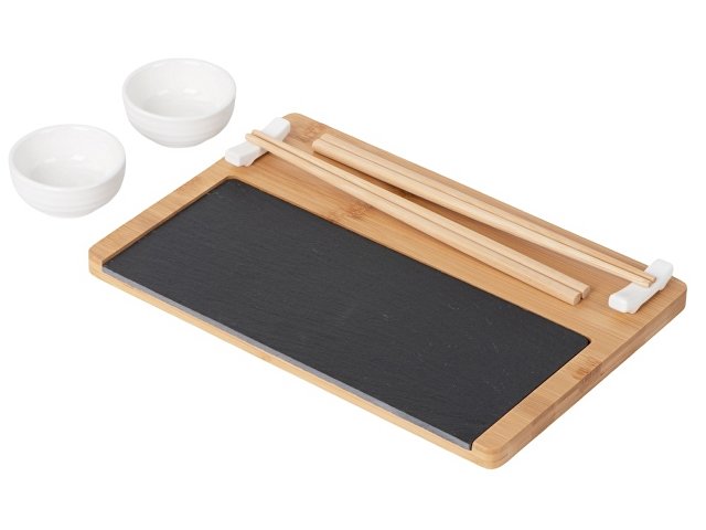 Размер ШВГ: | бамбуковая доска- 30 х 20 х 1,9 см, сланцевая доска- 26,7 х 11,9 х 0,5 см, палочки- 25 см, соусницы d7,2 х 3 |