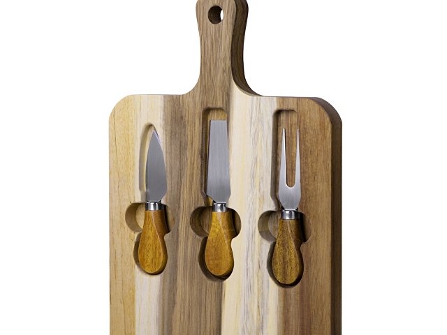 Набор состоит из доски, двух ножей и вилки для сыра.