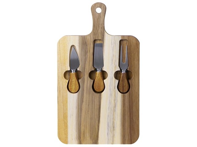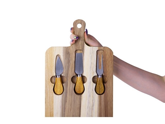 Набор состоит из доски, двух ножей и вилки для сыра.