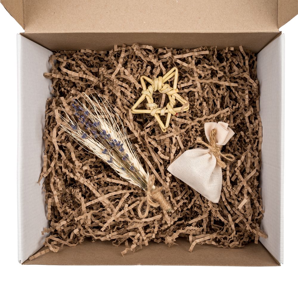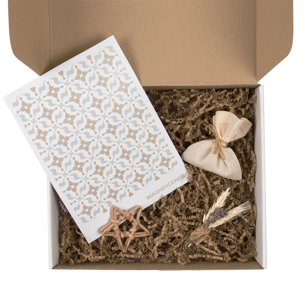 Коробка с наполнителем, шубером, открыткой и милыми украшениями Adorno — готовое решение для упаковки личного и корпоративного подарка.