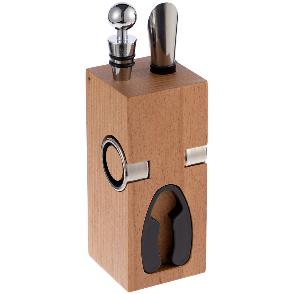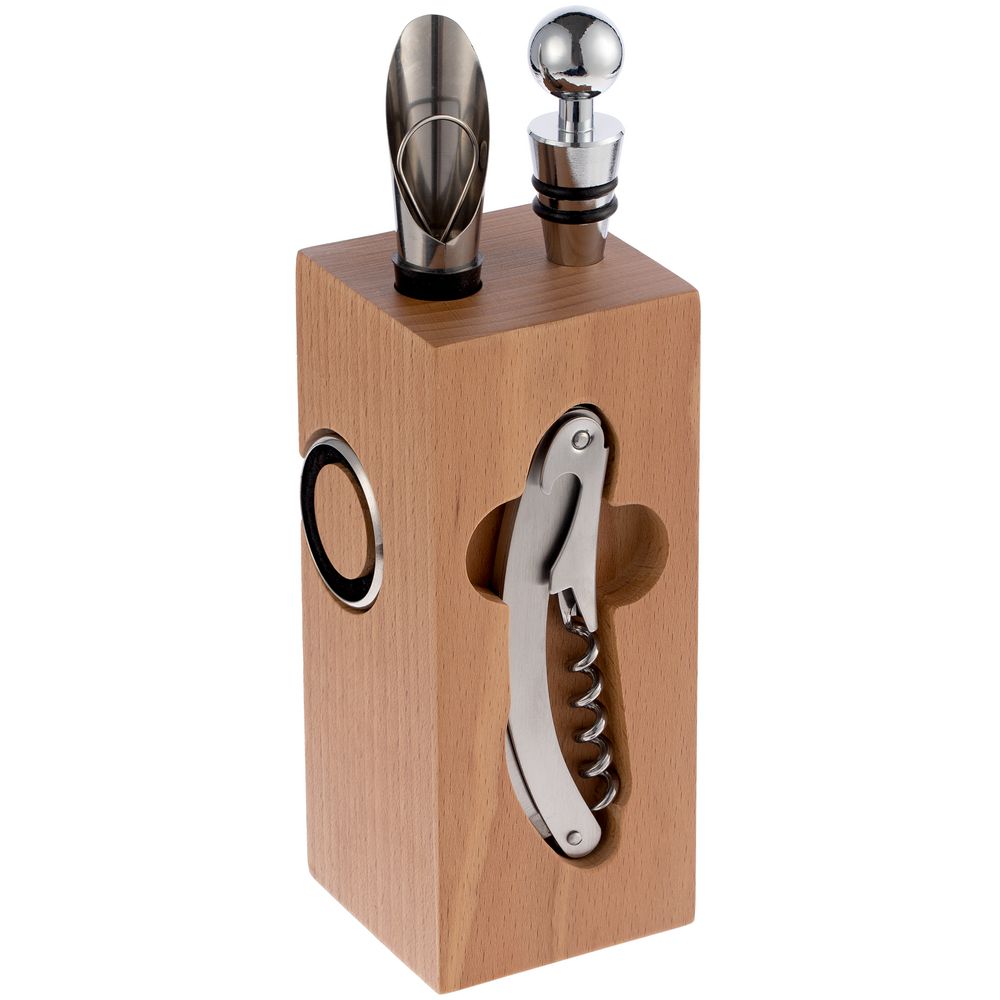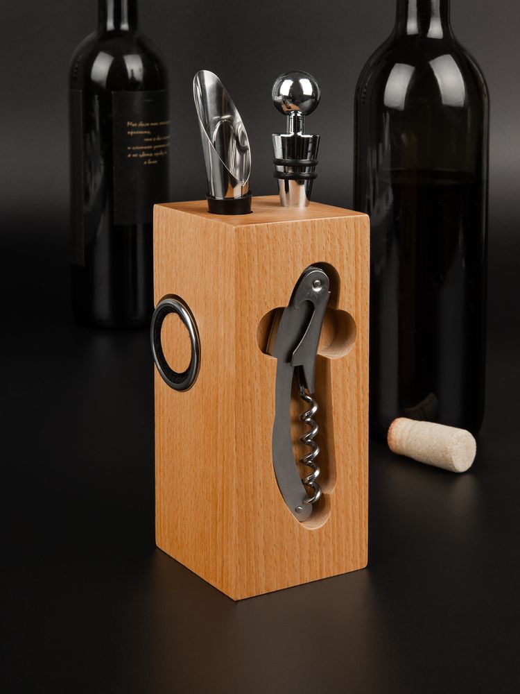 | Материал: | подставка - дерево, бук; штопор - нержавеющая сталь; каплеуловитель - нержавеющая сталь; аэратор - нержавеющая сталь, силикон; пробка - нержавеющая сталь, силикон; нож для фольги - пластик, нержавеющая сталь |