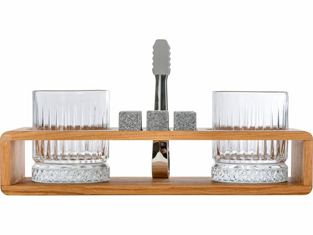Для сервировки в набор входит дубовая подставка с отверстиями под бокалы и щипцы, а также выемки под кубики.