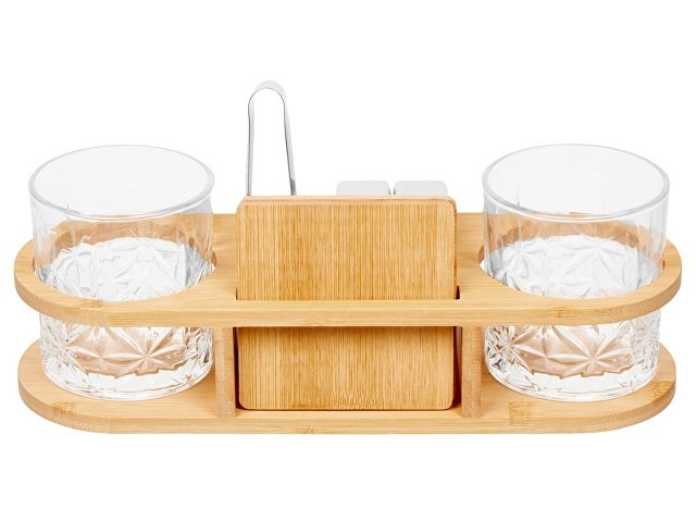 Подставка (1 шт.),на которой компактно размещены все предметы набора. Выполнена из бамбука.