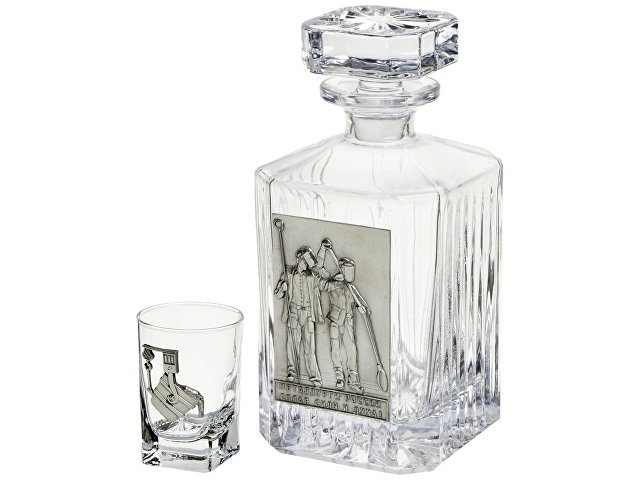 Набор для водки со штофом Металлургический - это отличный VIP-подарок для представителей металлургической отрасли. Подарок упакован в стильную подарочную упаковку, а сохранность набора гарантирует шелковый ложемент, который приятно оттеняет литье. Шильд спектрум (Шильд спектрум) на данный товар осуществляется бесплатно. Оплачивается только настройка оборудования в размере 1100 рублей на весь тираж.