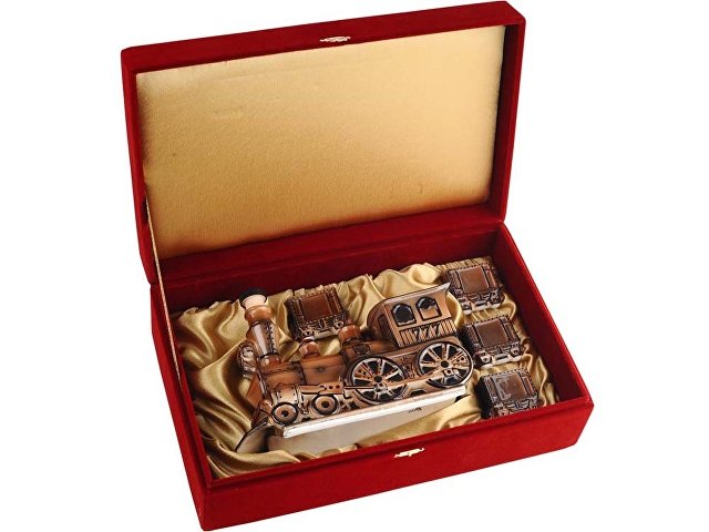 Если Ваша деятельность связана с железной дорогой, Вам будет особенно приятно видеть на своем праздничном столе набор для водки в виде паровоза и вагончиков. Паровоз выступает в роли штофа, а вагончики - в роли стопок. Причем это не массовое производство, а авторская работа.