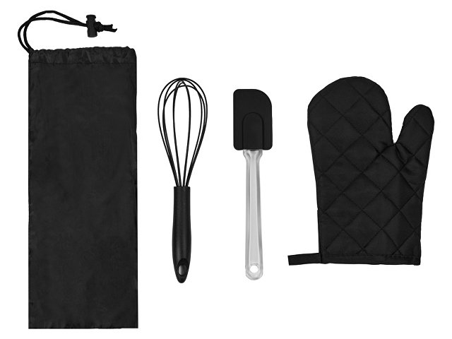 Набор Canele состоит из трёх предметов, без которых не обходится приготовление ни одного пирога или торта: венчика для взбивания яиц или крема, лопатки и прихватки для горячего.
