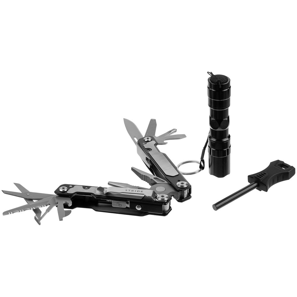 В комплекте чехол, фонарик (20 лм, работает от 1 батарейки типа АА 1,5 В, в комплект не входит) и огниво.