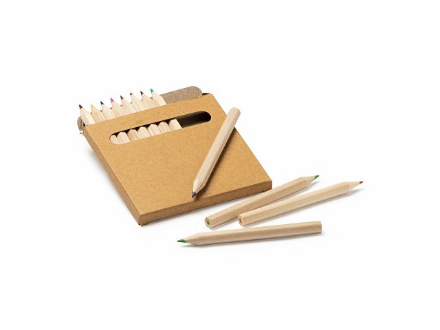 Набор из 12 деревянных карандашей в коробке из переработанного картона. Тампопечать (1 цвет (цветные изделия)) на данный товар осуществляется бесплатно. Оплачивается только настройка оборудования в размере 4500 рублей на весь тираж.
